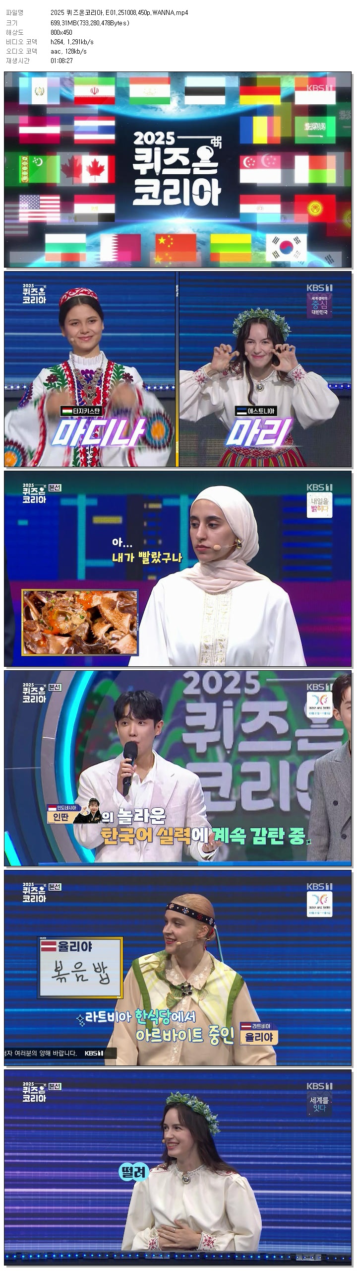 | [KBS1] 2025 퀴즈온코리아.E01.251008.450p.WANNA[이재성, 이준].mp4 | 699.3 M | 01:08:27 | 800x450 |