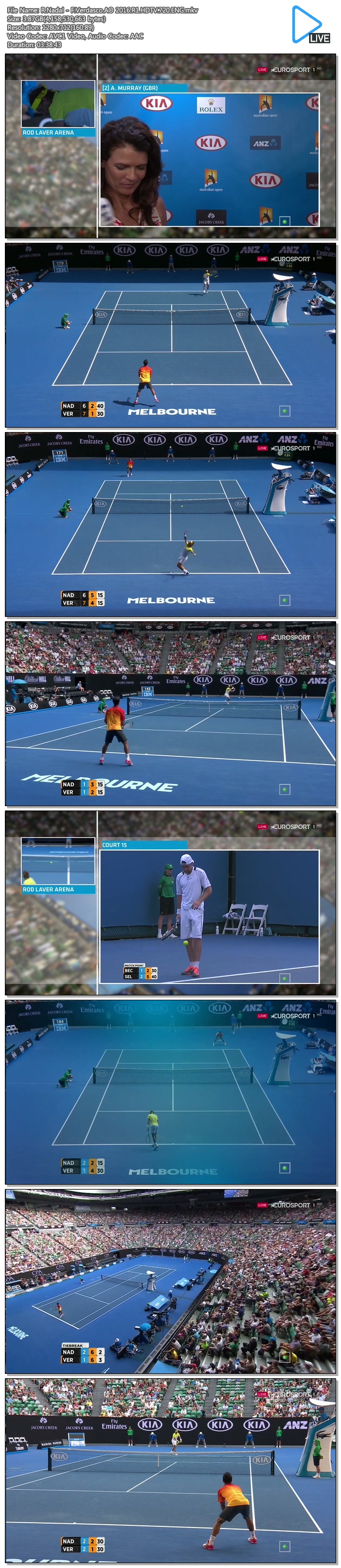 | R.Nadal - F.Verdasco.AO 2016.R1.HDTV.720.ENG.mkv | 3.9 G | 03:38:43 | 1280x712 |