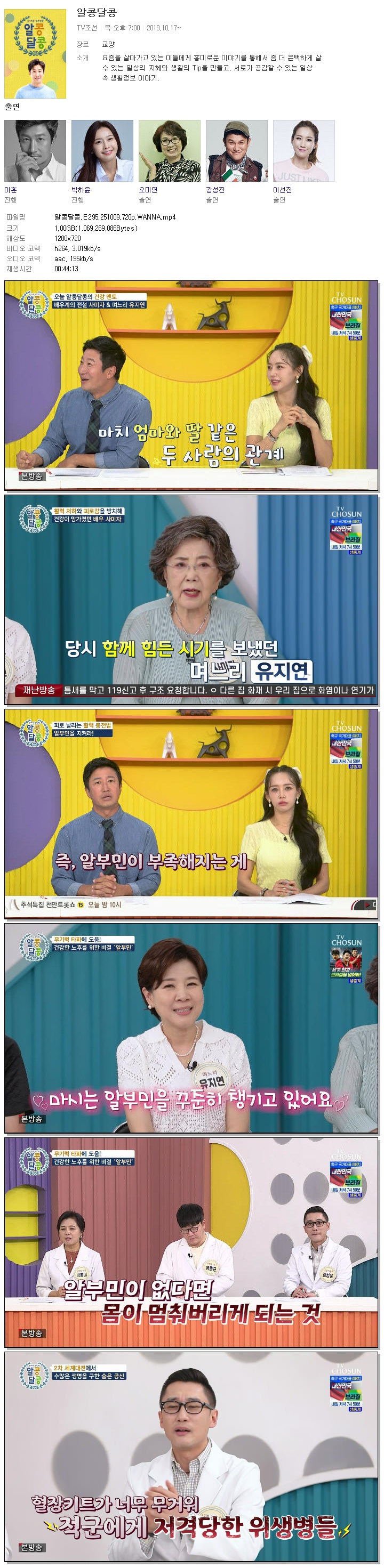 | [TV조선] 알콩달콩.E295.251009.720p.WANNA[이훈, 지원이].mp4 | 1019.7 M | 00:44:13 | 1280x720 |
