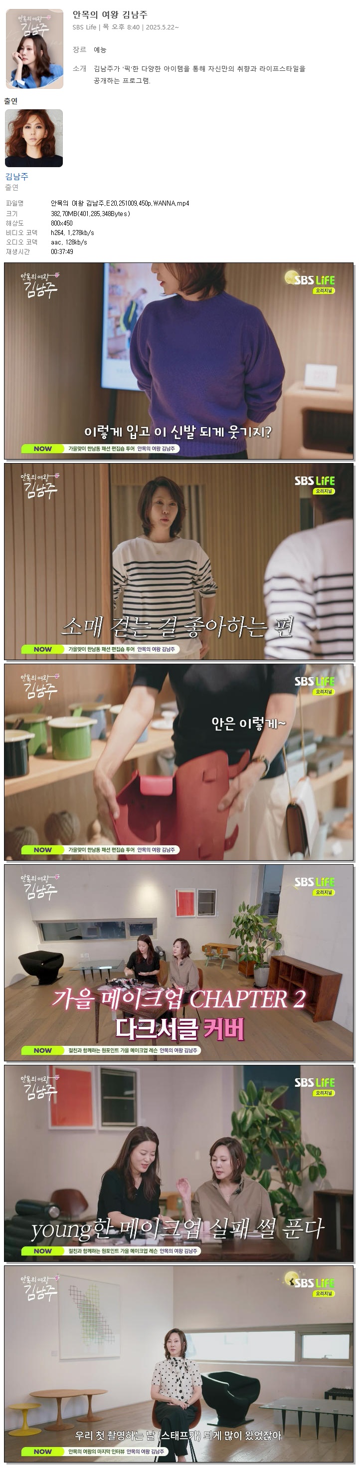 [SBS LIFE] 안목의 여왕 김남주.E20.251009.450p.WANNA[김남주].mp4 382.7 M 00:37:49 800x450