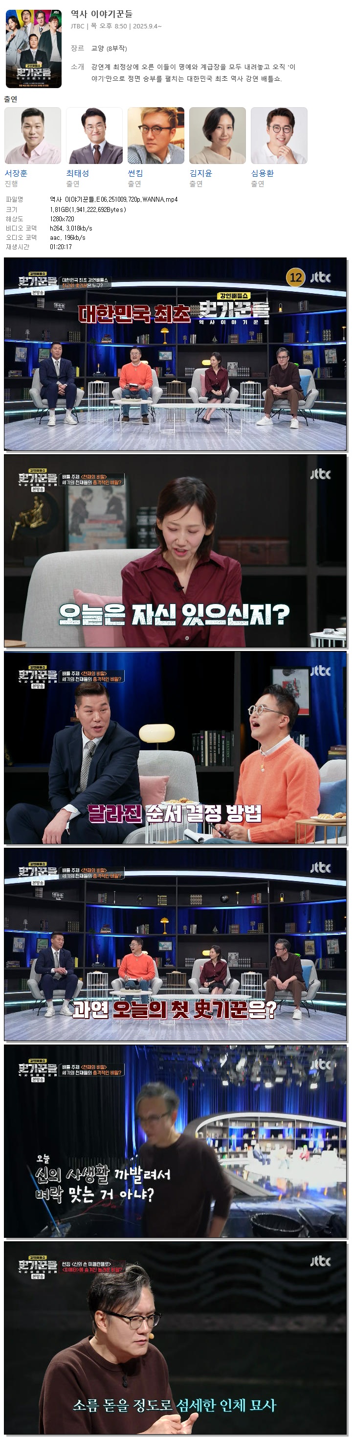 [JTBC] 역사 이야기꾼들.E06.251009.720p.WANNA[서장훈, 최태성].mp4 1.8 G 01:20:17 1280x720