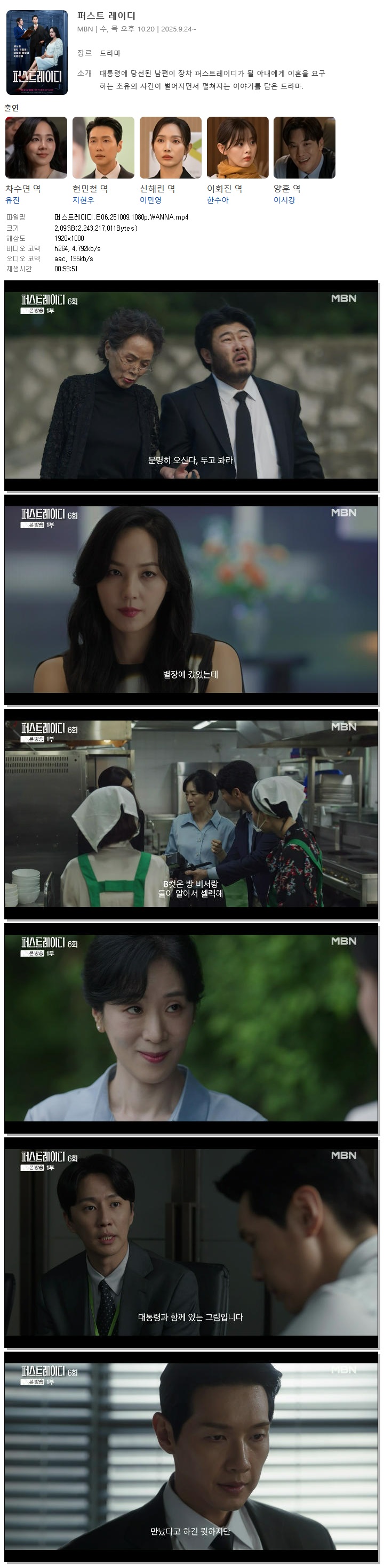 [MBN] 퍼스트레이디.E06.251009.1080p.WANNA[유진, 지현우].mp4 2.1 G 00:59:51 1920x1080