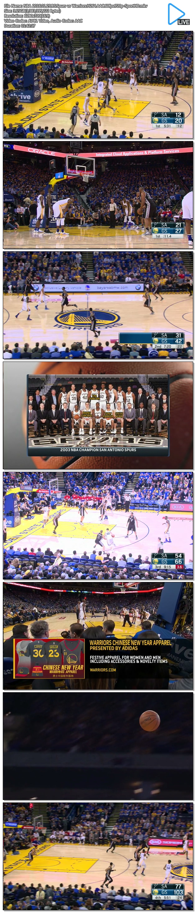 | NBA 2016.01.25.RS.Spurs vs Warriors.H264.AAC.60fps.720p-SportHD.mkv | 3.2 G | 01:42:17 | 1280x720 |