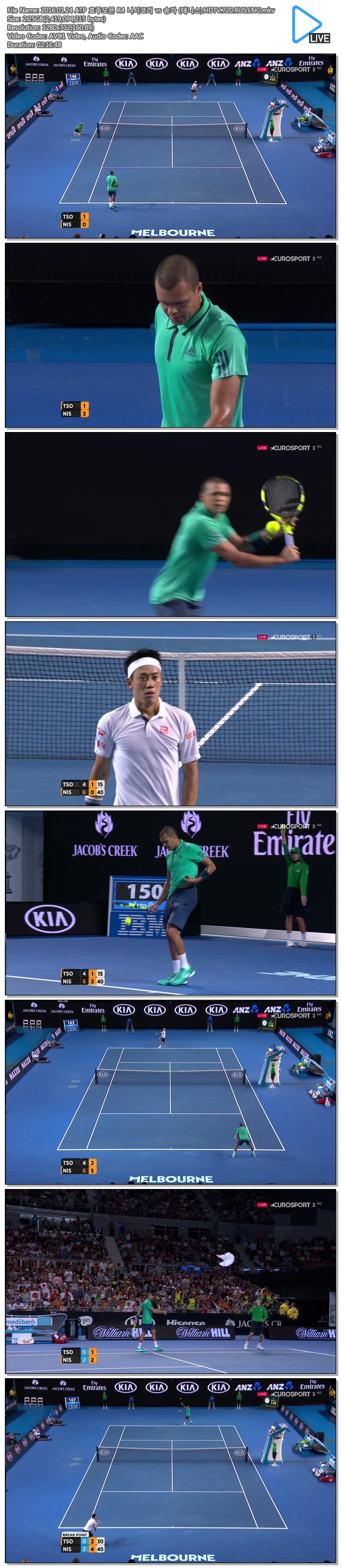 2016.01.24 ATP 호주오픈 R4 니시코리 vs 송가 (테니스).HDTV.720.RUS.ENG.mkv 2.3 G 02:11:48 1280x712