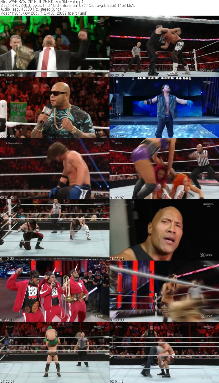 | WWE.RAW.2016.01.25.HDTV.x264-Ebi.mp4 | 1.4 G | 02:14:35 | 712x400 |