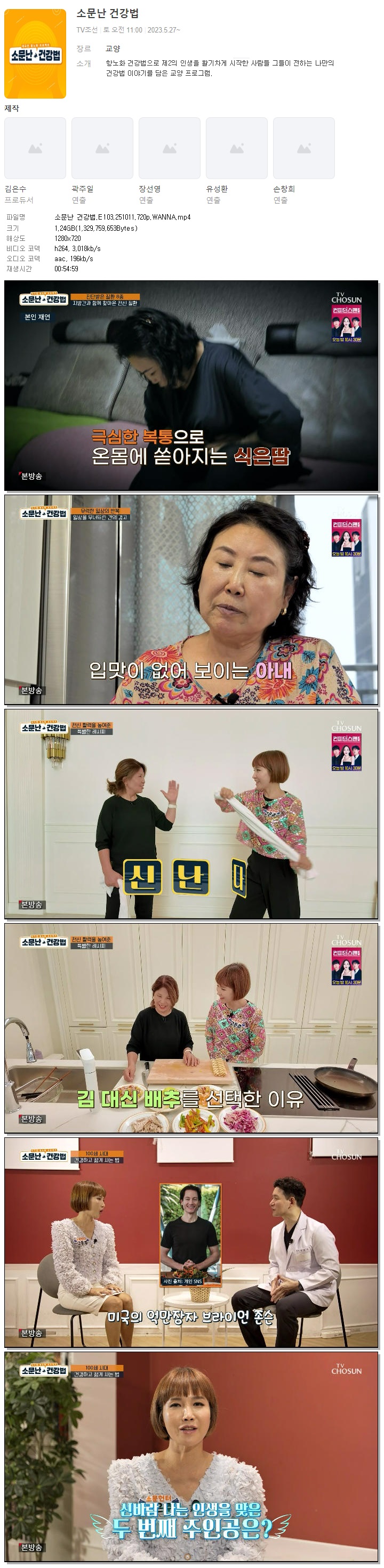 [TV조선] 소문난 건강법.E103.251011.720p.WANNA.mp4 1.2 G 00:54:59 1280x720