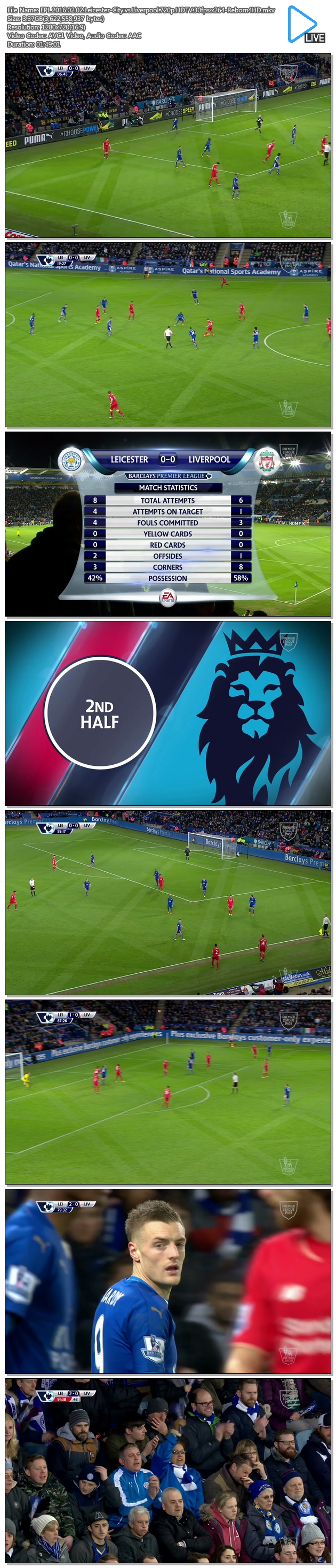 | EPL.2016.02.02.Leicester-City.vs.Liverpool.720p.HDTV.30fps.x264-Reborn4HD.mkv | 3.4 G | 01:49:01 | 1280x720 |