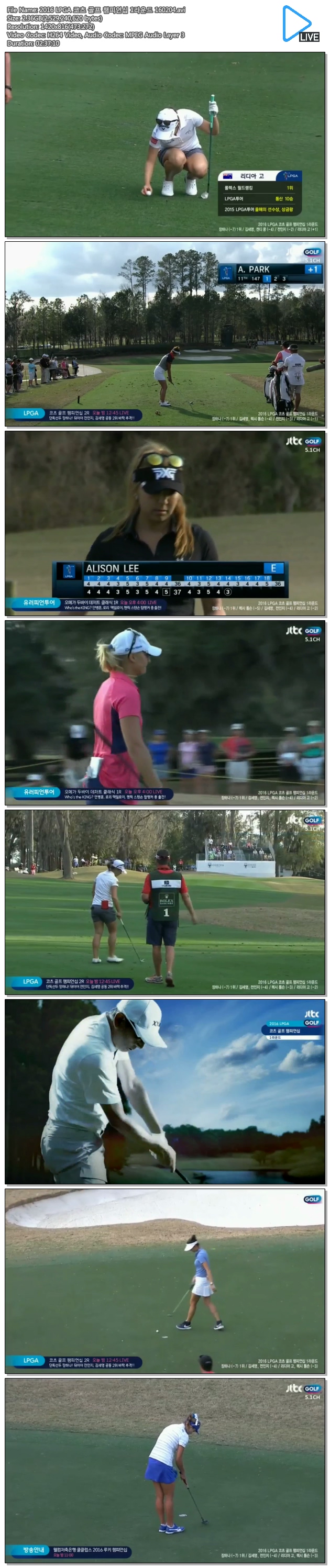 | 2016 LPGA 코츠 골프 챔피언십 1라운드 160204.avi | 2.4 G | 02:37:10 | 1420x816 |