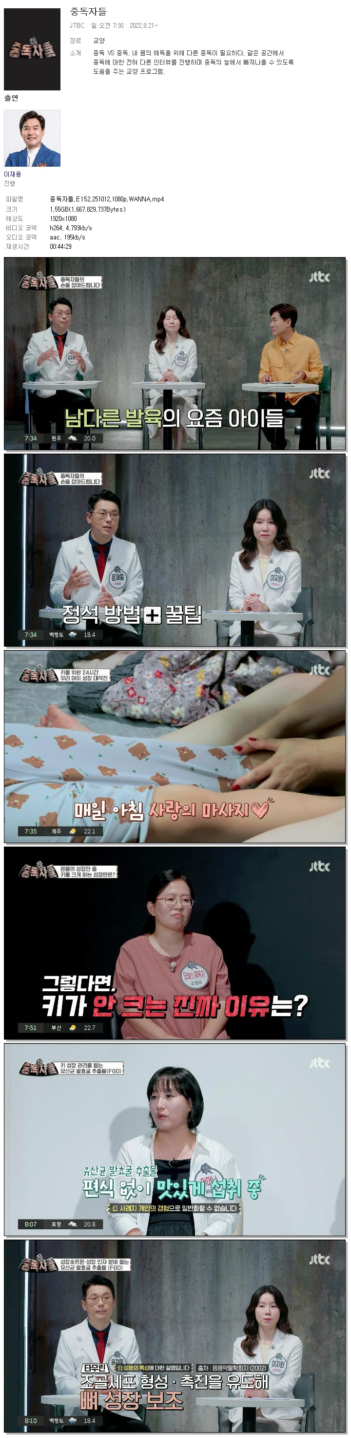 | [JTBC] 중독자들.E152.251012.1080p.WANNA[이재용].mp4 | 1.6 G | 00:44:29 | 1920x1080 |