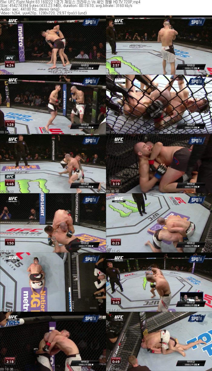 UFC Fight Night 83 160222 1경기 제임스 크라우스 Vs 셰인 캠벨 HDTV 720P.mp4 433.2 M 00:19:10 1280x720