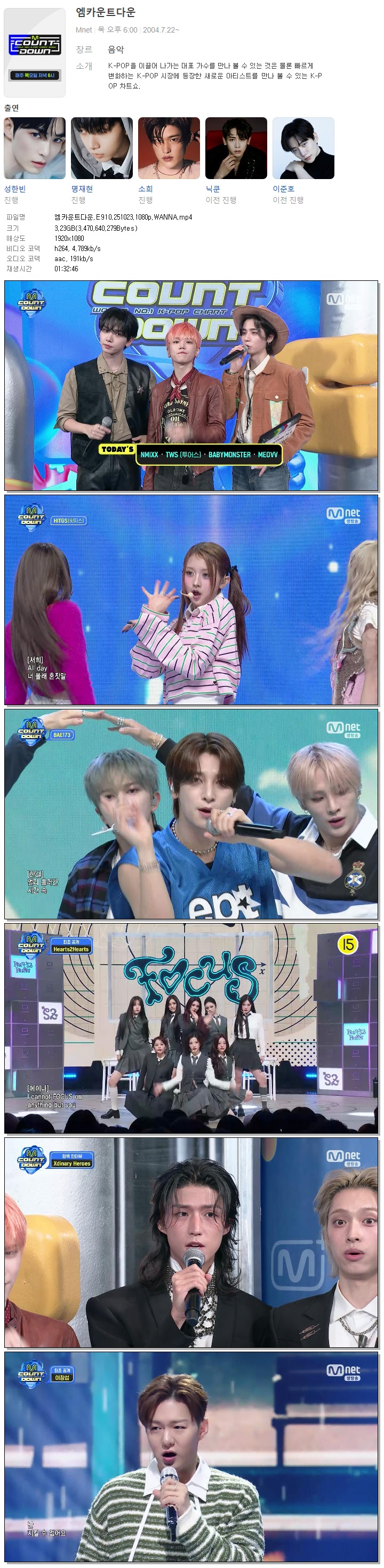 [M.net] 엠카운트다운.E910.251023.1080p.WANNA[이창섭, BOYNEXTDOOR].mp4 3.2 G 01:32:46 1920x1080