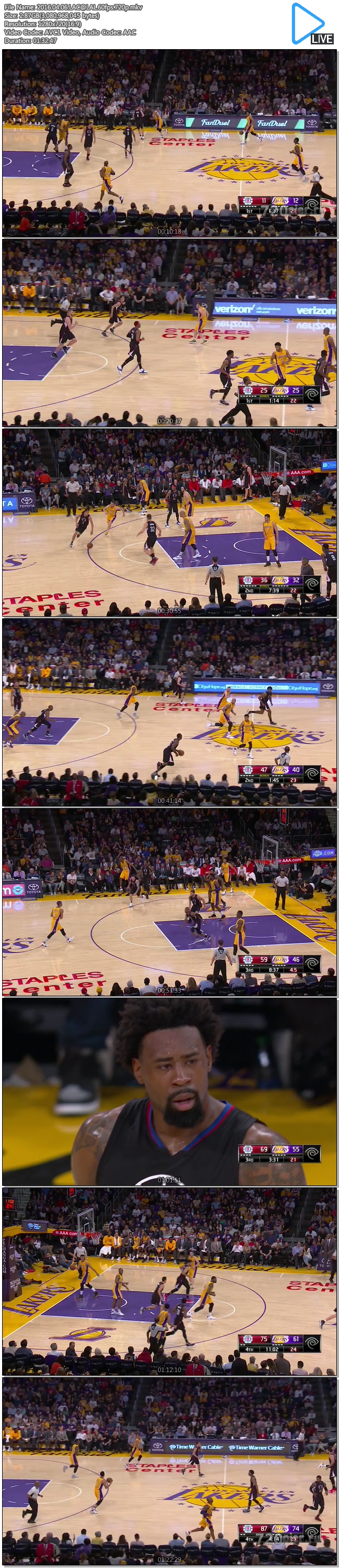 [NBA] LA레이커스 vs LA클리퍼스 160407 [초고화질,720P60fps] 다시보기 토렌트