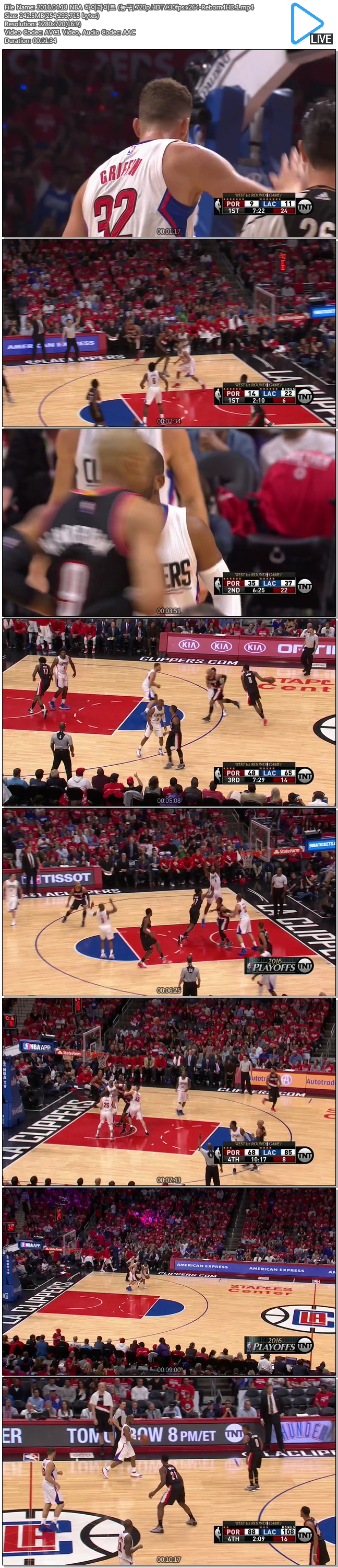 | 2016.04.18 NBA 하이라이트 (농구).720p.HDTV.30fps.x264-Reborn4HD.1.mp4 | 242.5 M | 00:11:34 | 1280x720 |