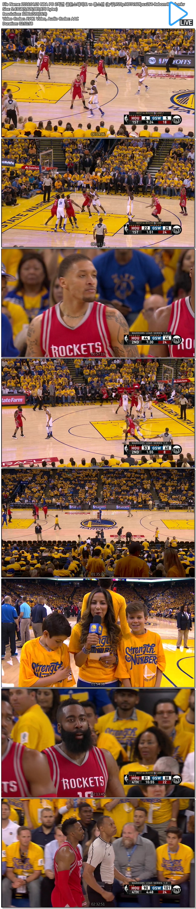 2016.04.19 NBA PO 2차전 골든스테이트 vs 휴스턴 (농구).720p.HDTV.60fps.x264-Reborn4HD_h.mkv 5.4 G 02:51:58 1280x720