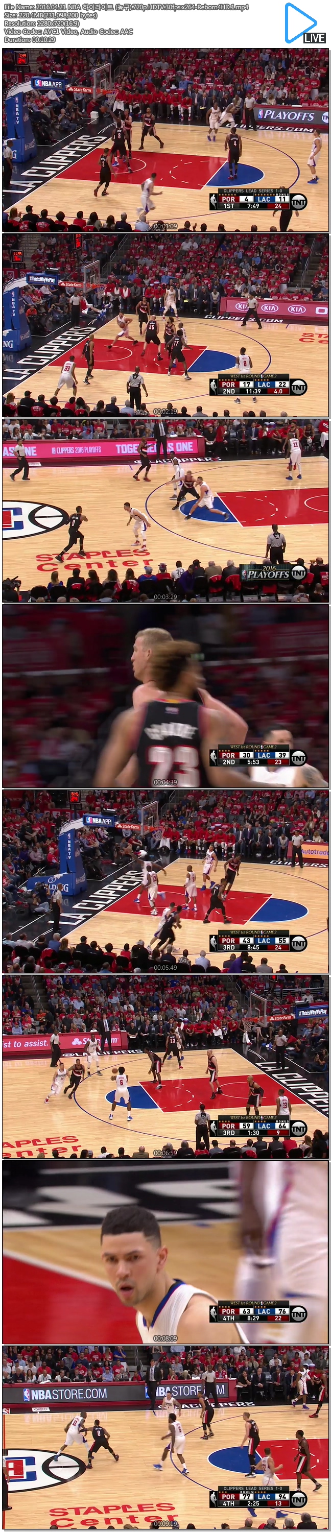 | 2016.04.21 NBA 하이라이트 (농구).720p.HDTV.30fps.x264-Reborn4HD.1.mp4 | 220.4 M | 00:10:29 | 1280x720 |