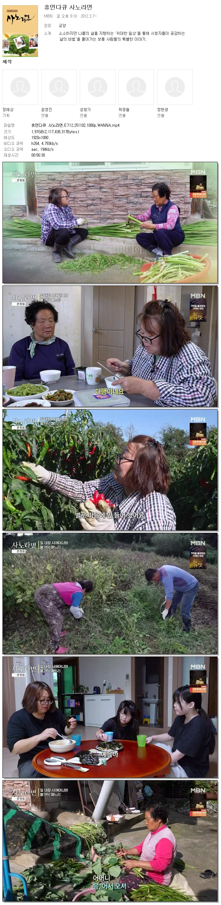 | [MBN] 휴먼다큐 사노라면.E712.251102.1080p.WANNA.mp4 | 2 G | 00:56:30 | 1920x1080 |