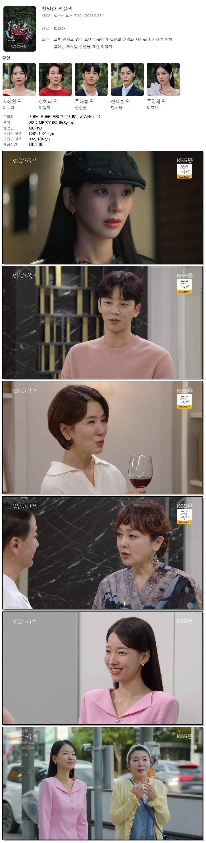 [KBS2] 친밀한 리플리.E28.251105.450p.WANNA[이시아, 이일화].mp4 286.7 M 00:28:16 800x450