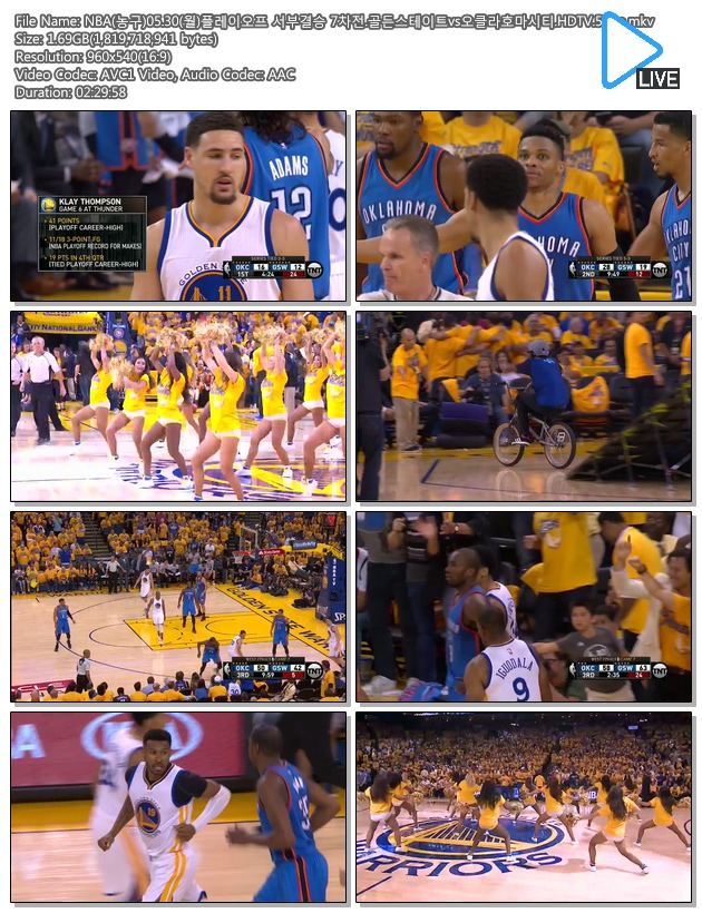 NBA(농구)05.30(월)플레이오프 서부결승 7차전.골든스테이트vs오클라호마시티.HDTV.540p 다시보기 토렌트