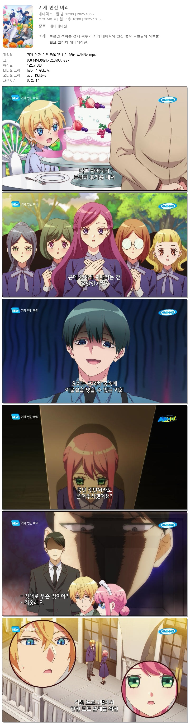 | 기계 인간 마리.E06.251110.1080p.WANNA.mp4 | 850.1 M | 00:23:47 | 1920x1080 |