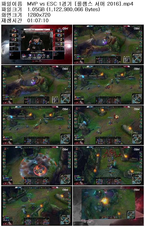 | MVP vs ESC 1경기 [롤챔스 서머 2016].mp4 | 1 G | 01:07:10 | 1280x720 |