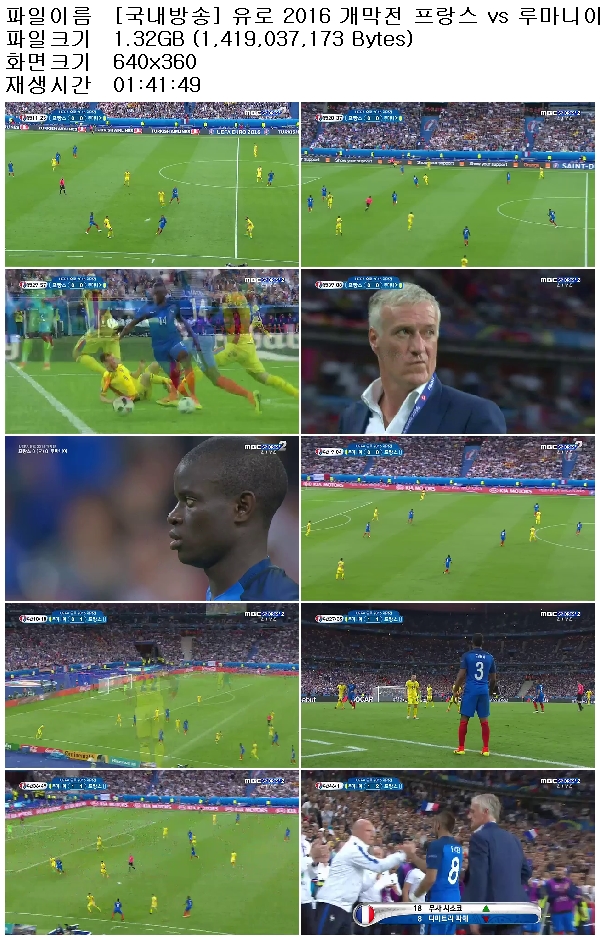 [국내방송] 유로 2016 개막전 프랑스 vs 루마니아 160611 다시보기 토렌트