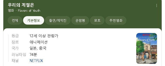 | [극장판] Flavors of Youth .2018. [1080p]. 10Audio .mkv | 3.6 G | 01:14:08 | 1920x1080 |
