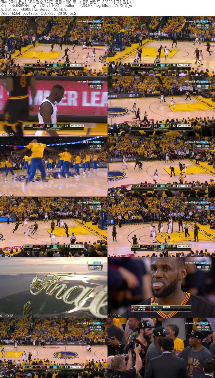 | [국내방송] NBA 결승 7차전 골든스테이트 vs 클리블랜드160620 [고화질].avi | 2.7 G | 02:38:53 | 1280x720 |