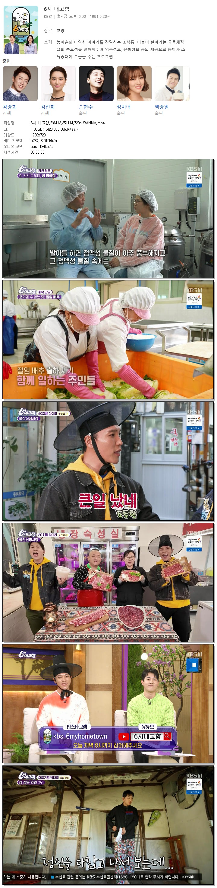 | [KBS1] 6시 내고향.E8412.251114.720p.WANNA[강승화, 김진희].mp4 | 1.3 G | 00:58:53 | 1280x720 |