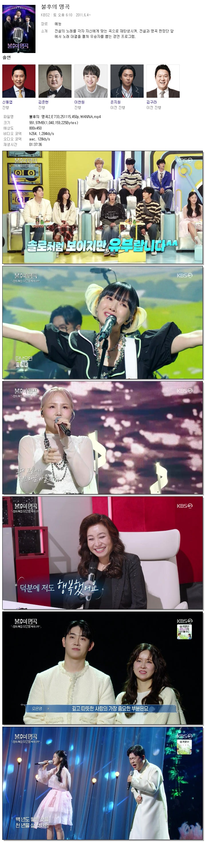 [KBS2] 불후의 명곡2.E733.251115.450p.WANNA[오은영].mp4 992 M 01:37:36 800x450