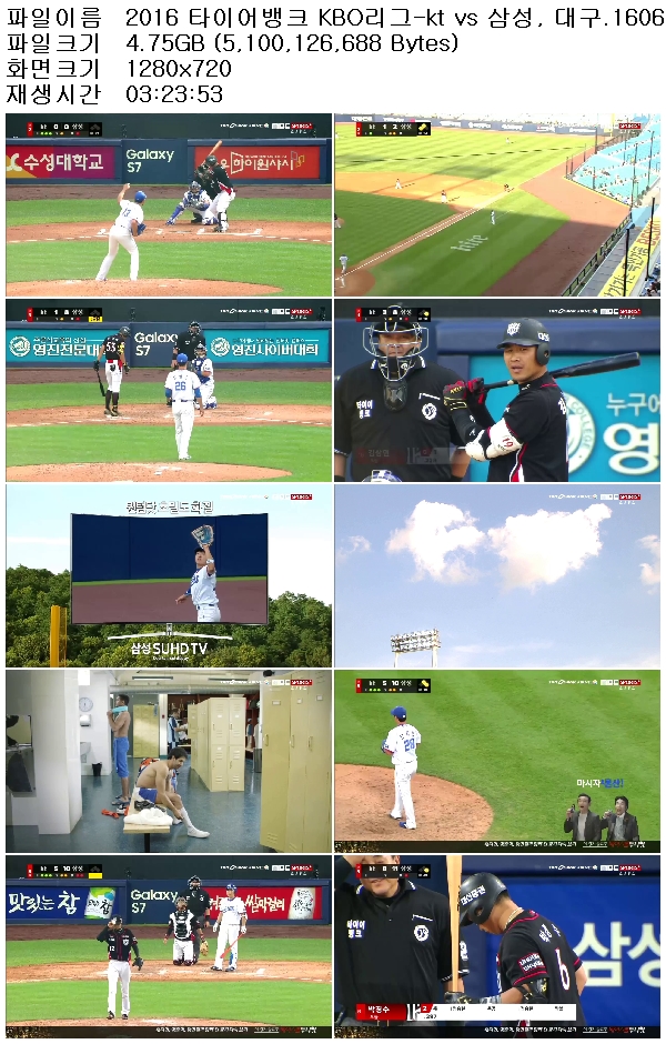 | 2016 타이어뱅크 KBO리그-kt vs 삼성, 대구.160626.HDTV.H264.720p-GCrel.mp4 | 4.7 G | 03:23:53 | 1280x720 |