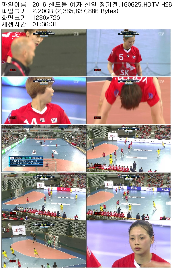2016 핸드볼 여자 한일 정기전.160625.HDTV.H264.720p.GCrel.mp4 2.2 G 01:36:31 1280x720