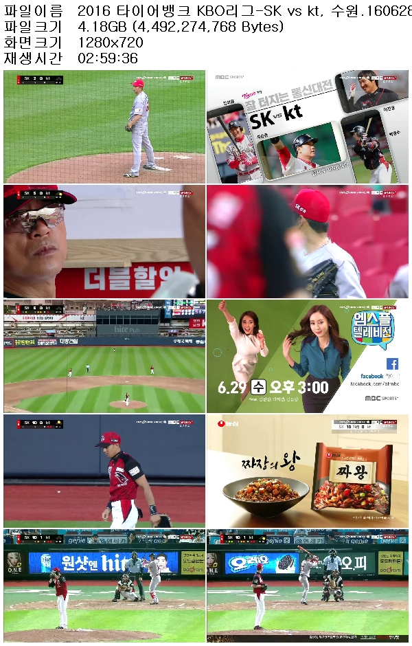 2016 타이어뱅크 KBO리그-SK vs kt, 수원.160628.HDTV.H264.720p-GCrel.mp4 4.2 G 02:59:36 1280x720