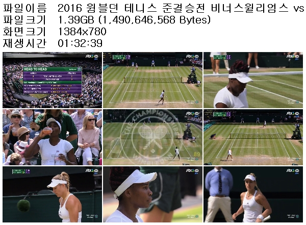 | 2016 윔블던 테니스 준결승전 비너스윌리엄스 vs 안젤리크커버 160707 [국내방송].avi | 1.4 G | 01:32:39 | 1384x780 |