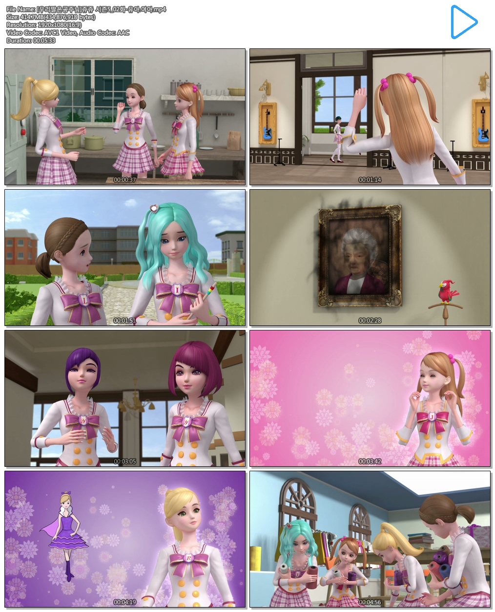 | [우리딸은공주님]쥬쥬 시즌5_02화-유아.여아.mp4 | 414.7 M | 00:05:33 | 1920x1080 |