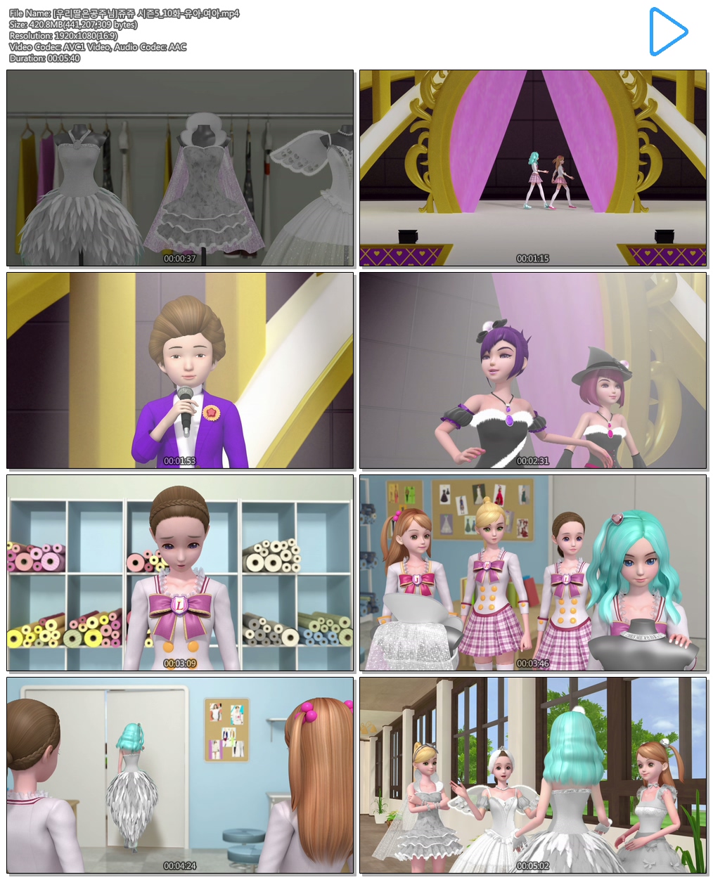 | [우리딸은공주님]쥬쥬 시즌5_10화-유아.여아.mp4 | 420.8 M | 00:05:40 | 1920x1080 |