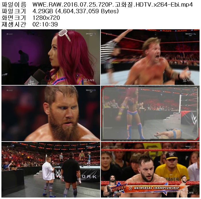 WWE.RAW.2016.07.25.720P.고화질.HDTV.x264-Ebi.mp4 4.3 G 02:10:39 1280x720