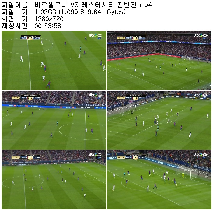| 바르셀로나 VS 레스터시티 전반전.mp4 | 1 G | 00:53:58 | 1280x720 |
