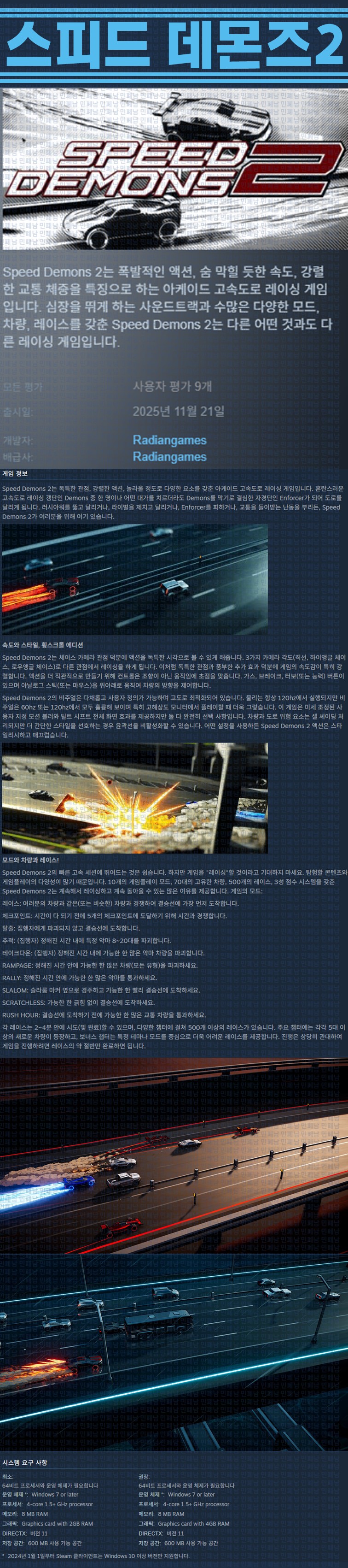 [한글무설치] 스피드 데몬즈 2 v1.0.0.3 다시보기 토렌트