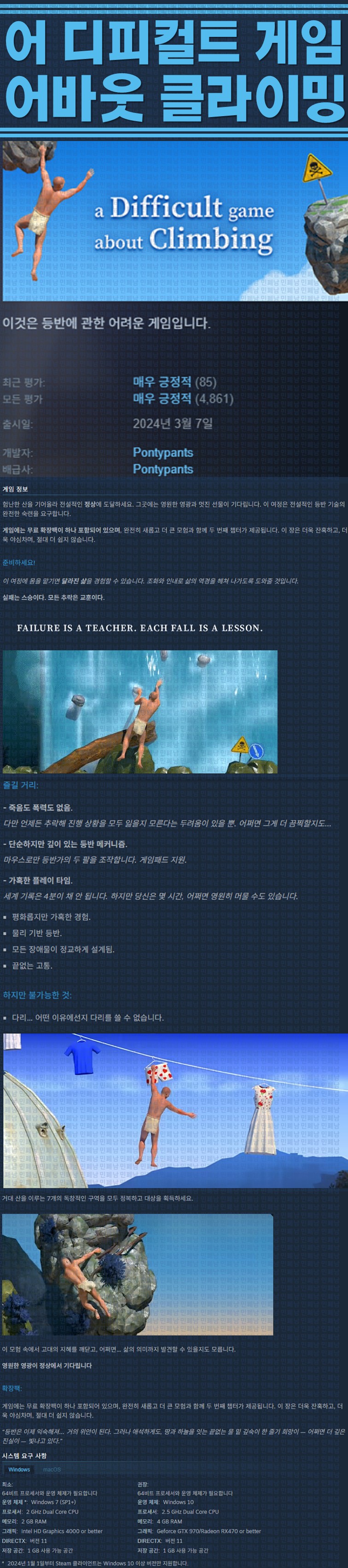 [한글무설치] 어 디피컬트 게임 어바웃 클라이밍 v1.2.65 다시보기 토렌트