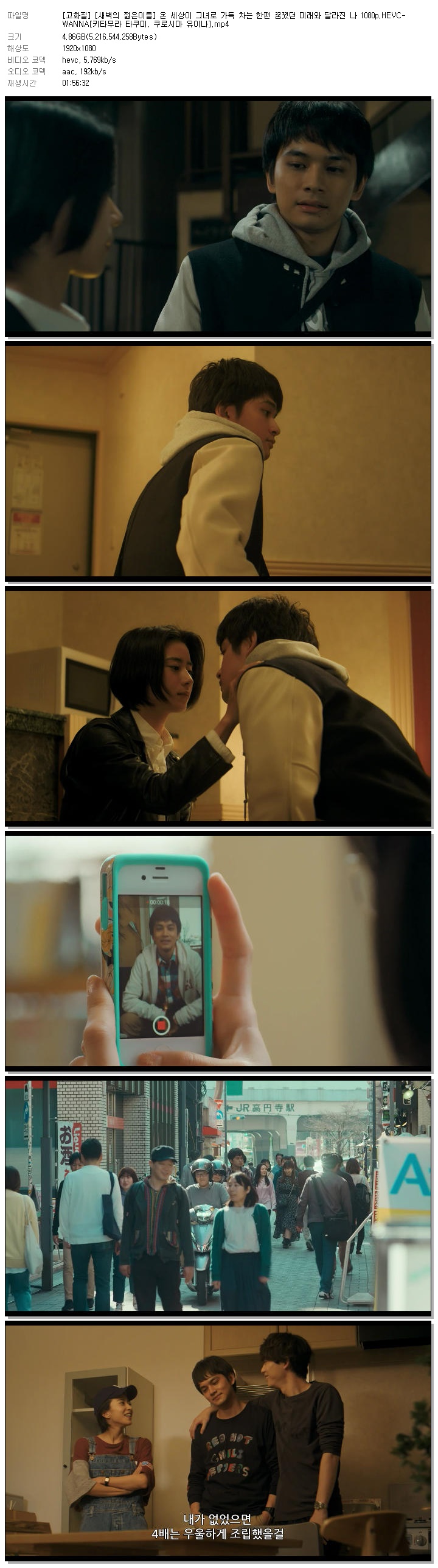 | [고화질] [새벽의 젊은이들] 온 세상이 그녀로 가득 차는 한편 꿈꿨던 미래와 달라진 나 1080p.HEVC-WANNA[키타무라 타쿠미, 쿠로시마 유이나].mp4 | 4.9 G | 01:56:32 | 1920x1080 |