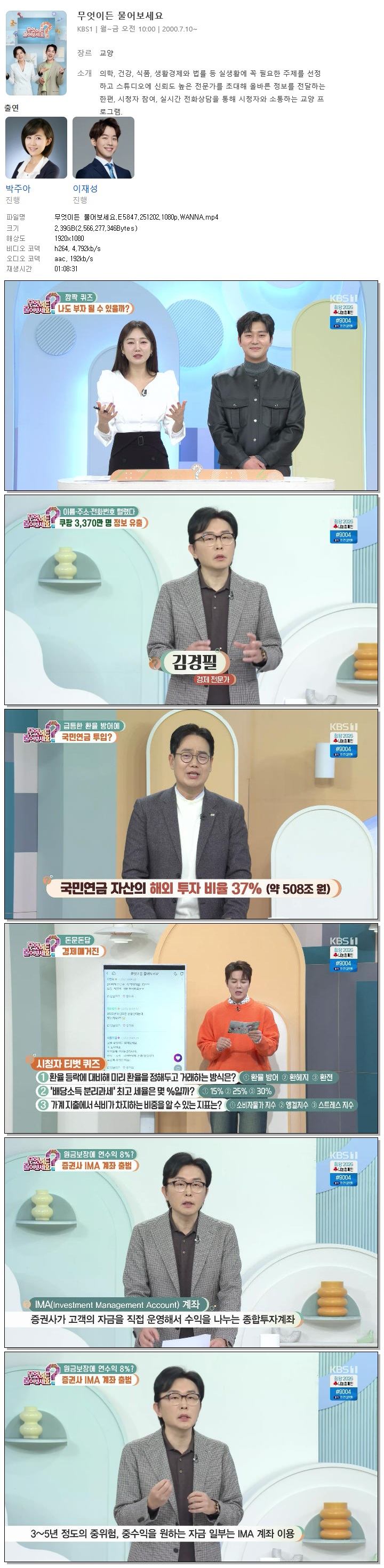 [KBS1] 무엇이든 물어보세요.E5847.251202.1080p.WANNA[박주아, 이재성] 다시보기 토렌트