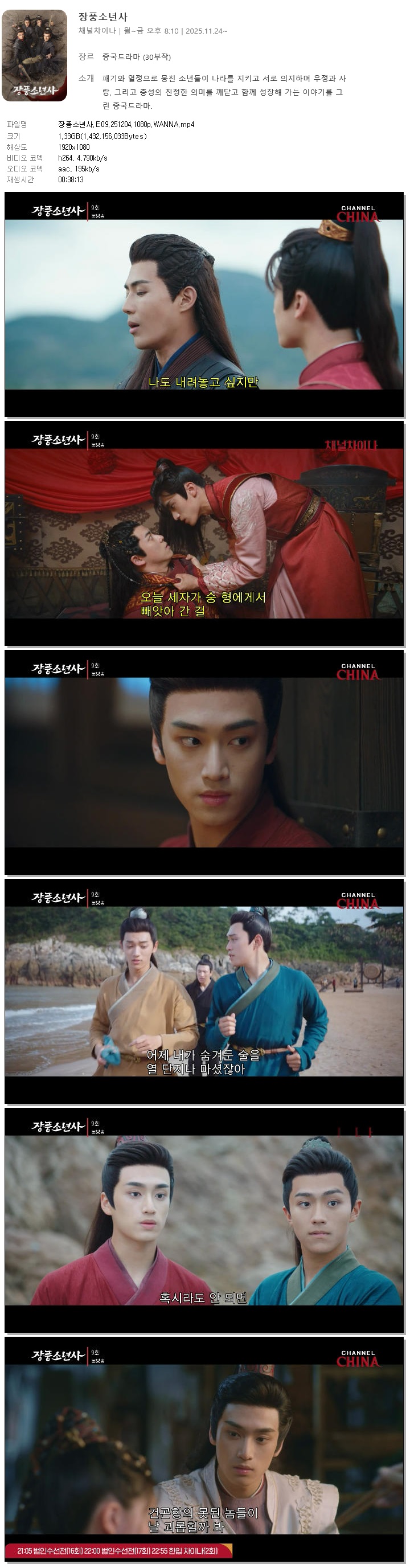[채널차이나] 장풍소년사.E09.251204.1080p.WANNA[이탁소, 장강락].mp4 1.3 G 00:38:13 1920x1080