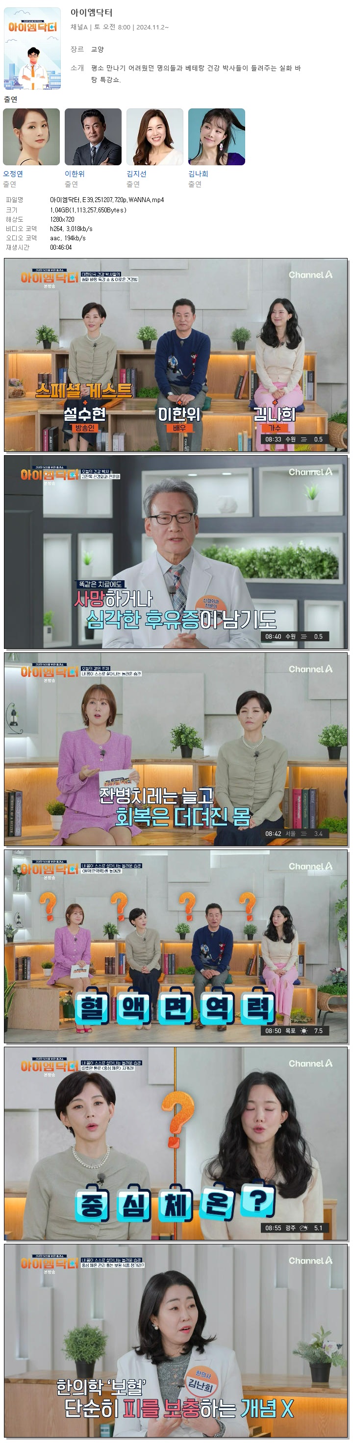 [채널A] 아이엠닥터.E39.251207.720p.WANNA[오정연, 이한위] 다시보기 토렌트