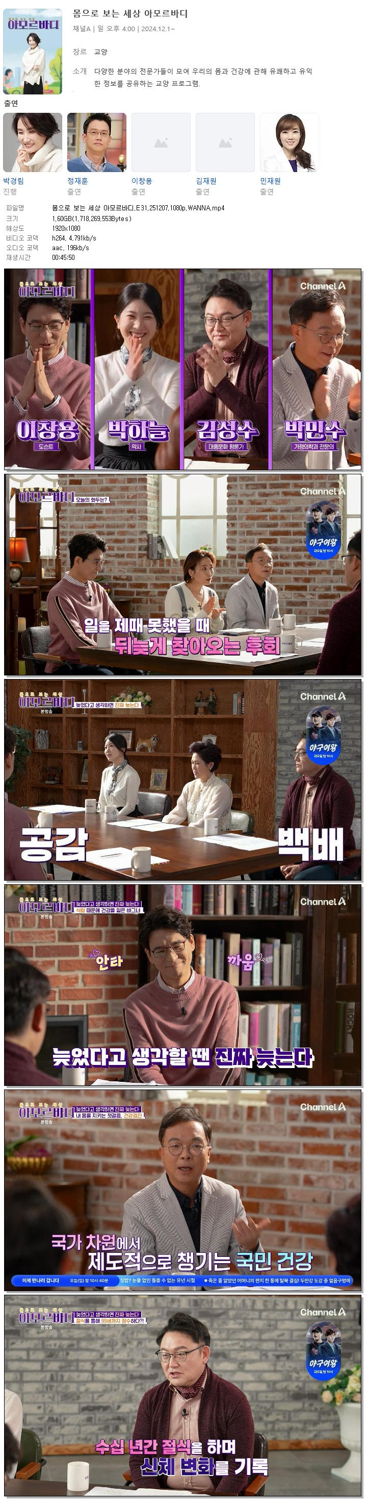 [채널A] 몸으로 보는 세상 아모르바디.E31.251207.1080p.WANNA[박경림].mp4 1.6 G 00:45:50 1920x1080