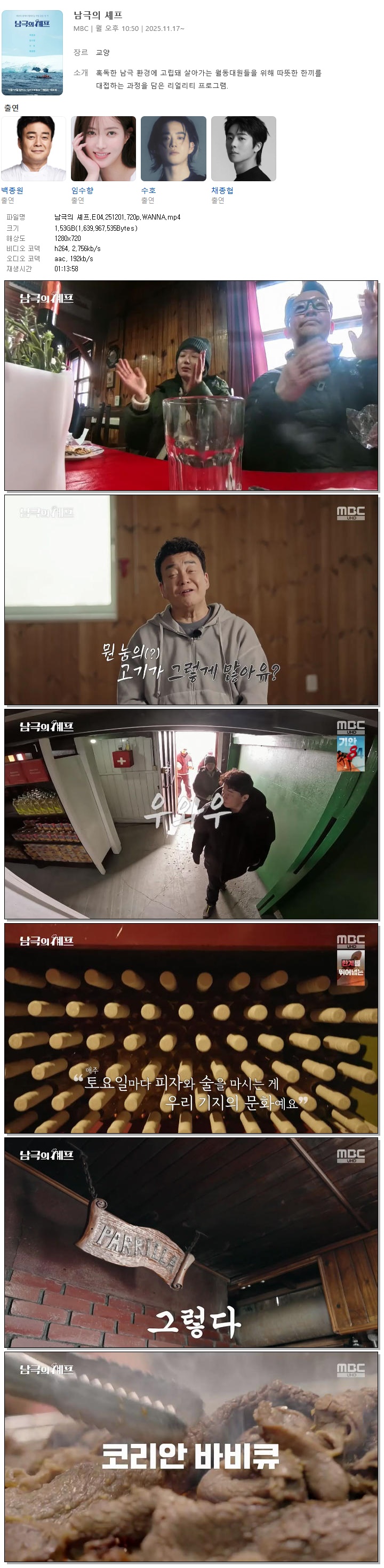 [MBC] 남극의 셰프.E04.251201.720p.WANNA[백종원, 임수향] 다시보기 토렌트
