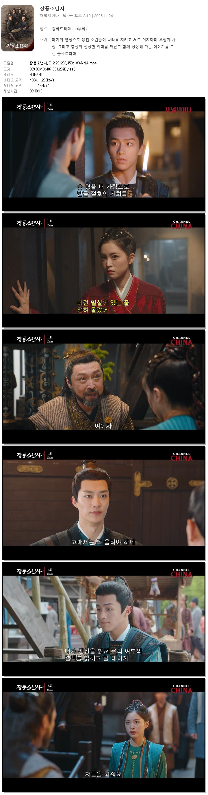 [채널차이나] 장풍소년사.E12.251209.450p.WANNA[이탁소, 장강락].mp4 389 M 00:38:15 800x450