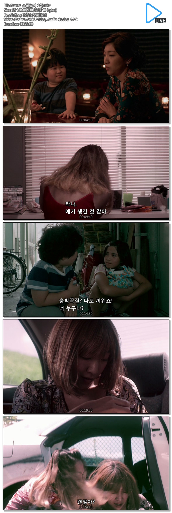 | 소꿉놀이 1화.mkv | 894.9 M | 00:29:00 | 1280x720 |