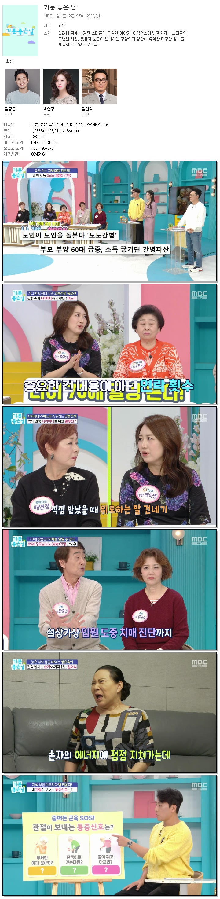 ■ 한 지붕 아래 가족 동상이몽 피할 수 없는 갈등의 씨앗! 모시고 산다 vs 얹혀산다 부모 자식 간 팽팽한 대립의 끝은? 기분 좋은 날 본방 사수하세요 ■ 상황극으로 알아보는 두 가족 이야기! 이해심 넘치는 가정과 폭풍 같은 신경전이 벌어지는 가정의 극과 극의 생생한 가족 모습 기분 좋은 날에서 놓치지 마세요! ■ 실제 사건으로 알아보는 남보다 못한 사이로 치닫는 가정불화부터 모두를 깜짝 놀라게 한 불효자의 충격적인 만행까지 기분 좋은 날에서 함께 하세요 ■ 황혼 재혼이 불러온 예상치 못한 재산 상속 문제 손수호 변호사가 알려주는 황혼 재혼으로 축나는 상속 재산 지키는 법은? 기분 좋은 날에서 알려드립니다! ■ 나이 들수록 급격히 감소하는 체내 콜라겐 피부는 물론 각종 장기까지 망가뜨린다?! 전신 건강 지키는 영양제 <모발 기능성 콜라겐> 모발 기능성 콜라겐이 전신 건강에 도움 되는 이유와 섭취법까지 기분 좋은 날에서 해결해 드립니다