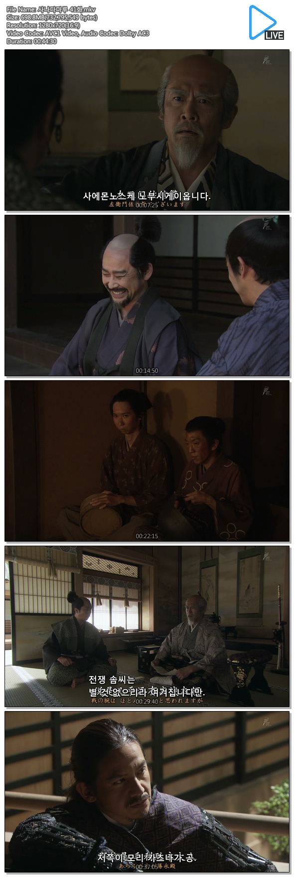 | 사나다마루 41화.mkv | 698.8 M | 00:44:30 | 1280x720 |