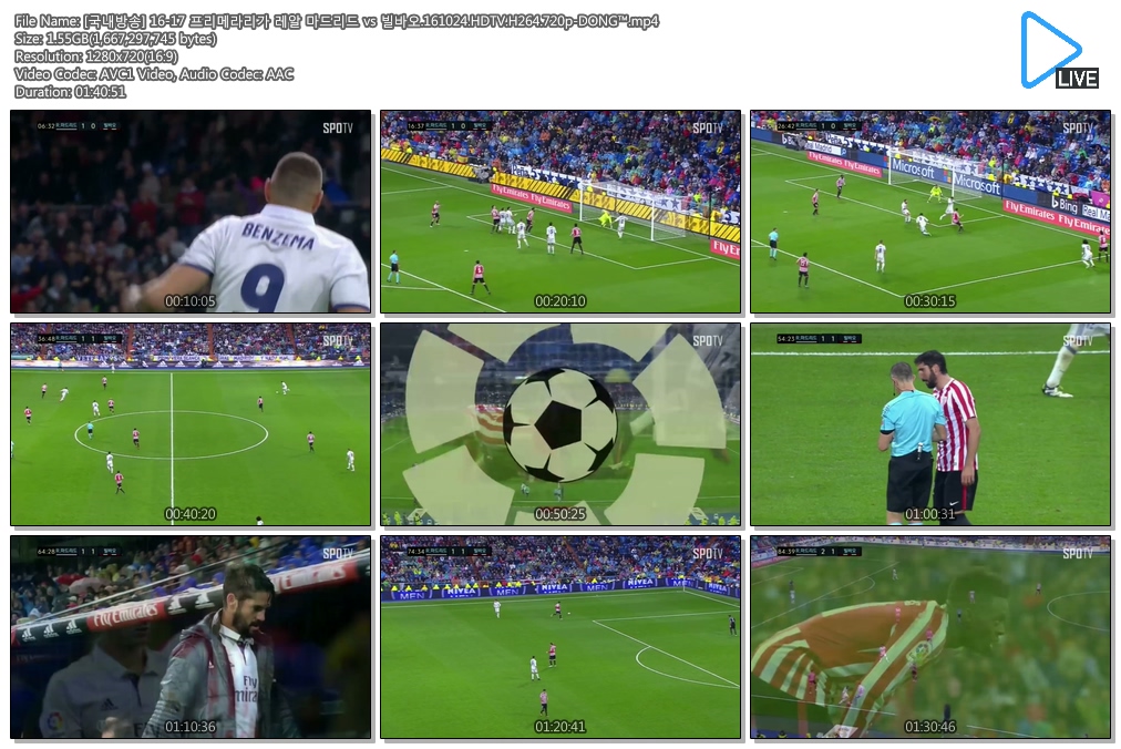 [국내방송] 16-17 프리메라리가 레알 마드리드 vs 빌바오.161024.HDTV.H264.720p-DONG™.mp4 1.6 G 01:40:51 1280x720